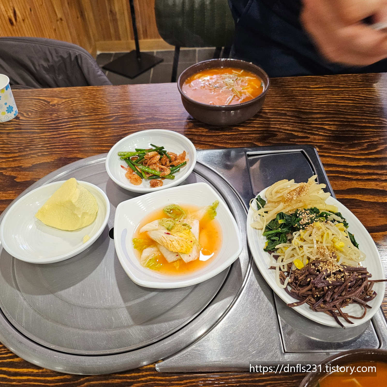 갱시기가 먹고 싶어 왔으니 빨강갱시기와 4색 나물을 함께 주문했습니다